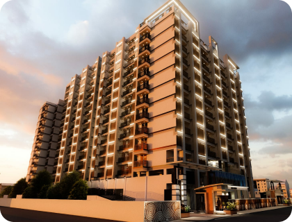 A landmark 15-floor residential tower with LED-lit façade — creating a striking presence on Prayagraj’s skyline, day and night.