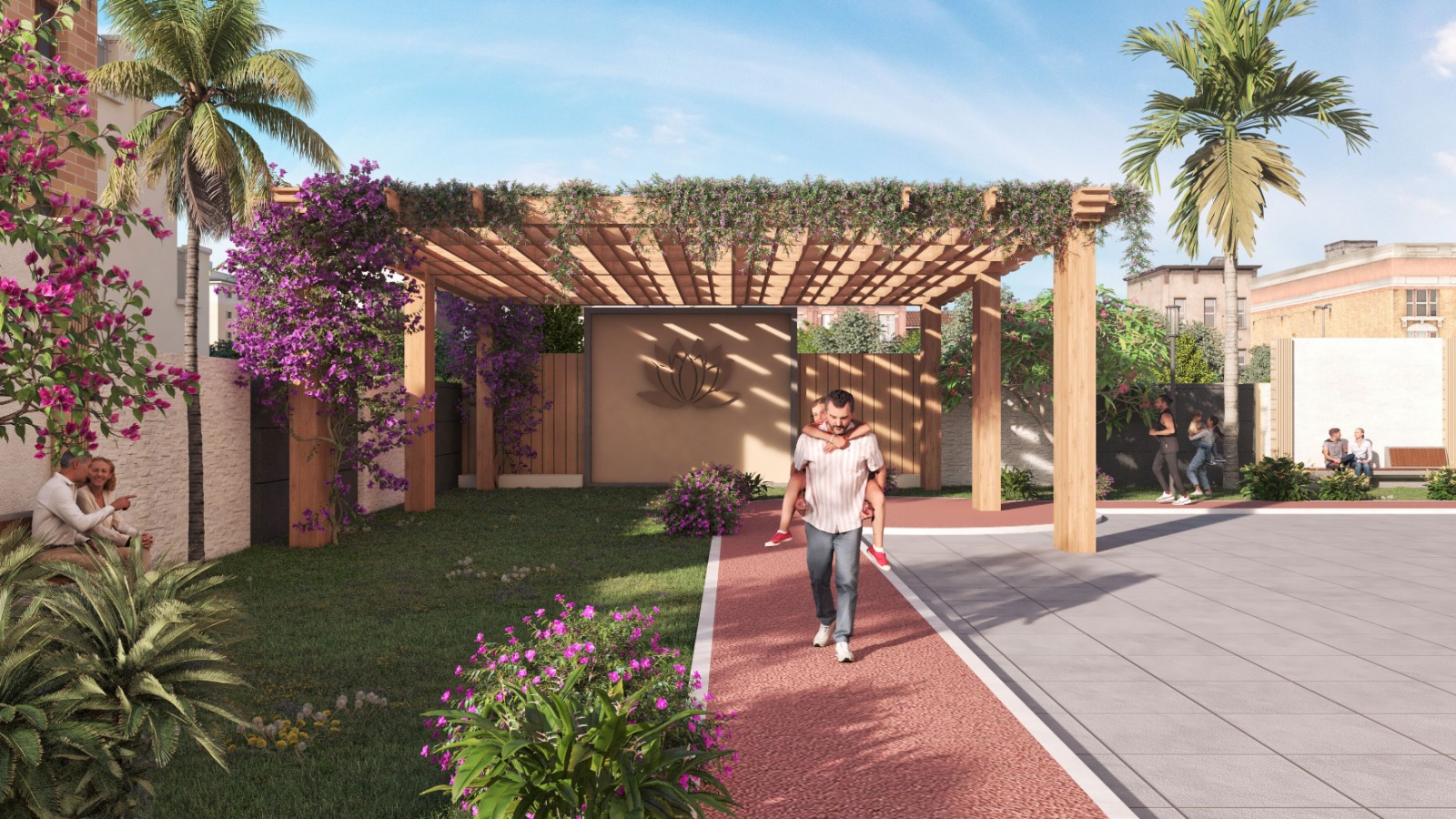 Lavish landscaping with seating areas, water features, theme gardens, walking tracks, yoga zones, and play areas.
